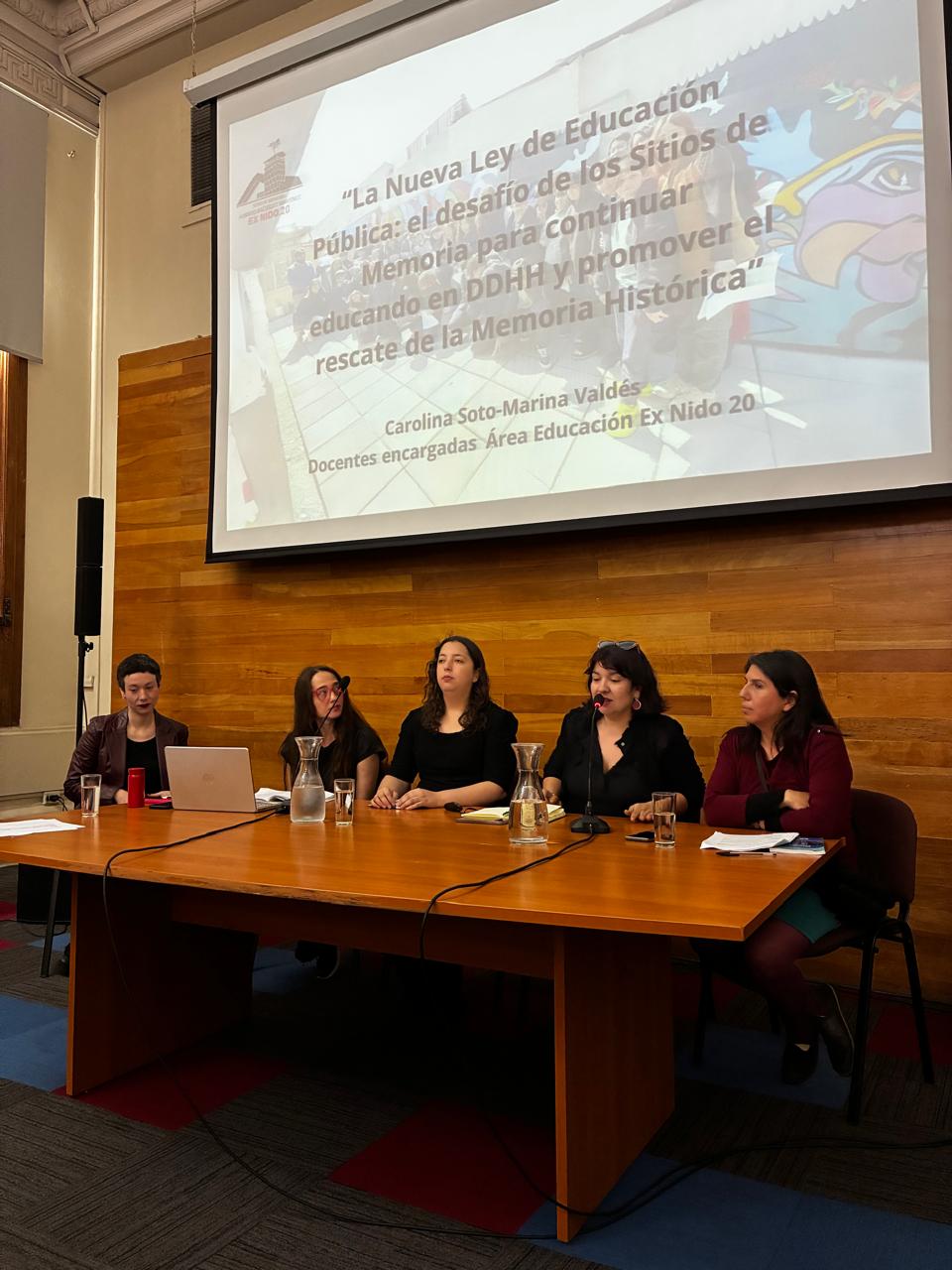 La primera mesa se tituló “Reflexiones y propuestas para la educación en Derechos Humanos”. En ella, expuso el Archivo Nacional de la Memoria (AN), con la ponencia llamada “Uso de documentos para una educación en Derechos Humanos. Presentación del Cuaderno Pedagógico”. También estuvieron representantes del Ex Nido 20, quienes presentaron: “La Nueva Ley de Educación Pública”: El desafío de los Sitios de Memoria para continuar educando en DDHH y promover el rescate de la Memoria Histórica”. Por último, cerró esta mesa el Ex Cuartel Borgoño con la ponencia “Construcción colaborativa de un guion educativo sobre el Cuartel Borgoño”.